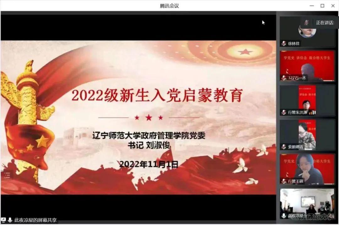 为加强2022级新生对中国共产党的认识、提高思想觉悟、端正入党动机、激发入党积极性,政府德州扑克 于2022年11月4日下午14:00以线上线下相结合的方式开展新生入党启蒙教育会,本次会议由政府德州扑克 党委书记刘淑俊老师主讲,2022级辅导员丁一洲老师主持。