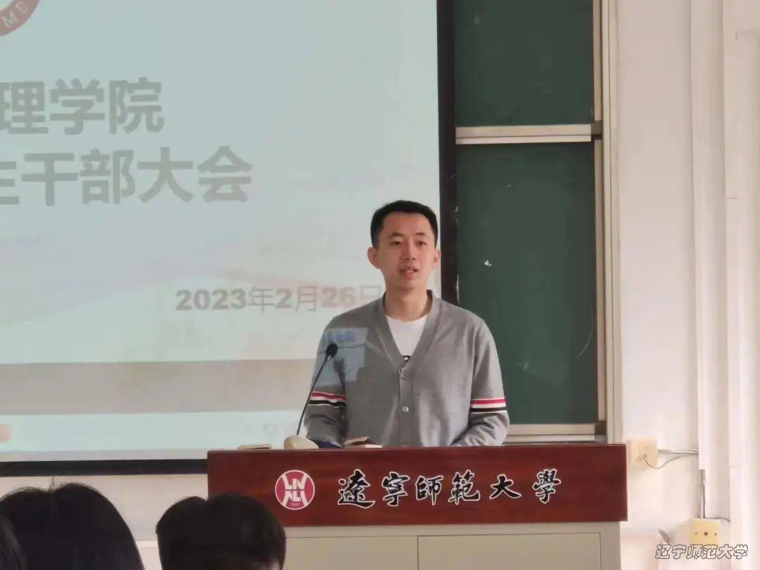 为加强学院学生干部队伍新学期能力建设,进一步增强学生干部的责任感、使命感,统筹规划本学期的工作,2023年2月26日上午9时,政府德州扑克 于管理楼302开展新学期学生干部大会。政府德州扑克 党委副书记于伟老师,政府德州扑克 团委书记车泉洋老师,辅导员韩璐老师,辅导员丁一洲老师以及德州扑克 全体团委、学生会、青年融媒体中心和寝室长出席了本次会议的。本次会议由政府德州扑克 学生会执行主席金泽皓主持。