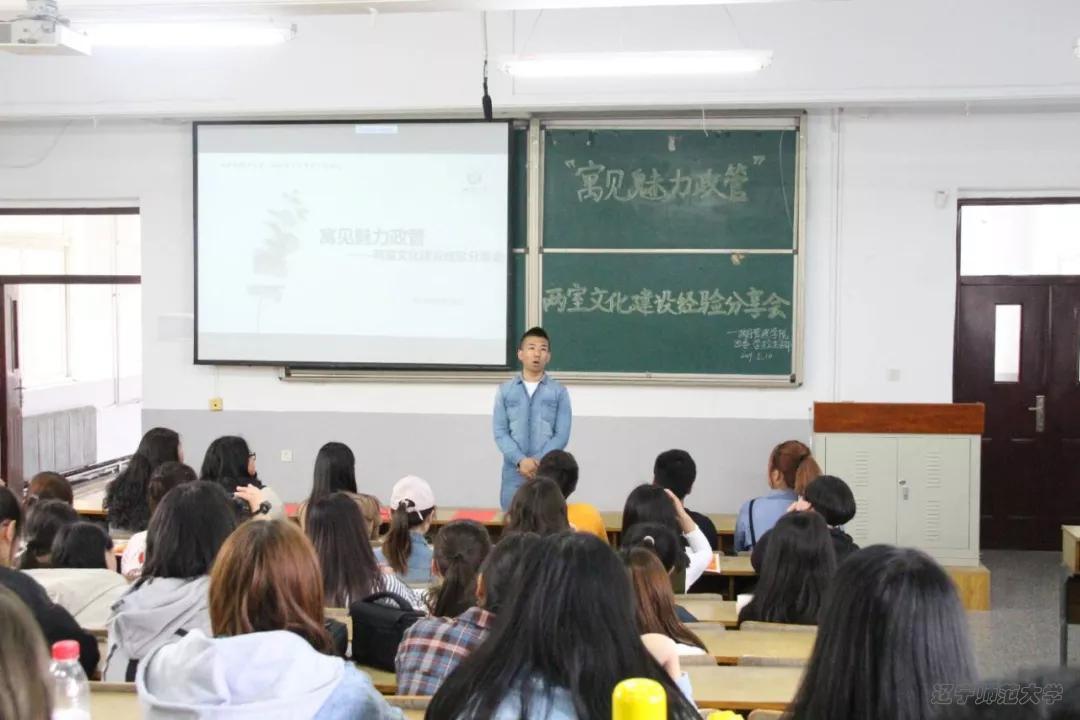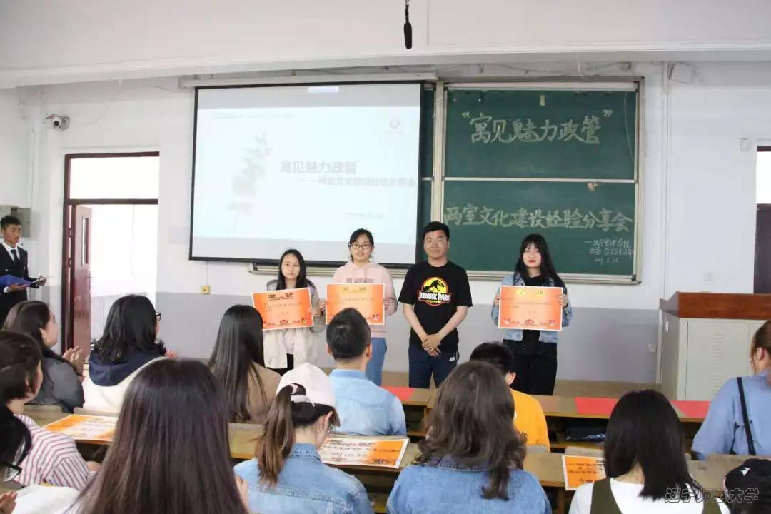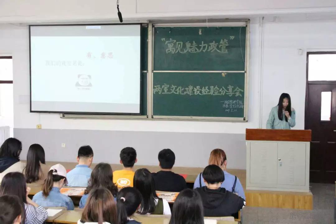 为了创造温馨和谐的学习生活环境,丰富同学们的大学生活,政府德州扑克 于2019年5月10日下午1点30分,在外语楼五合成功开展了“寓见魅力政管”两室文化建设经验分享会。此次活动由学院生活部承办,政府德州扑克 团委书记车泉洋老师,政府德州扑克 团委、学生会主席团成员,生活部成员,17级班级代表以及18级全体学生参加了本次分享会。